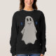 Este pequeño fantasma aparece en esta sudadera como una presencia tranquila pero imposible de ignorar.