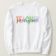 Esta sudadera unisex tiene un arcoiris pastel de colores que dice PROFESOR. Se puede personalizar con cualquier grado. El diseño funciona mejor en las opciones de impresión en blanco o vívido.