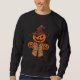 A high-resolution, vector-style illustration of a friendly yet mysterious Halloween character. This chibi-style jack-o'-lantern is depicted with a glowing, carved face and is dressed in a scarecrow hat and a stylish brown trench coat cinched with a belt. The character holds a small, carved pumpkin in each hand. The clean, graphic design is presented as a cut-out with no background.