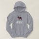El capucha de las mujeres con un reno dorado y un guión caligráfico " Feliz Navidad " y "Feliz Año Nuevo ". Bonito desgaste para las vacaciones de diciembre . De la tienda de lumirala.