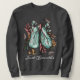 Esta sudadera colorida presenta una pintura acuarela de pulmones en azul acuático rodeada de plantas botánicas de color rosa y amarillo sobre una sudadera gris oscura. Las palabras "Just Breathe" aparecen en un guión blanco debajo de los pulmones.