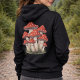 Women's zip front hoodie sweatshirt with the graphic printed on the back for a unique twist. The nostalgic illustration of an Amanita mushroom cluster captures retro storybook charm. With warm, red and cream colors and hand-drawn texture, this artwork brings a touch of enchanted-forest whimsy into your life. • Vivid printing is recommended for non-white garments.
