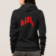 Este abrigo negro para mujer presenta un diseño tipográfico en rojo que le da carácter sin perder elegancia.