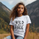 Abran un espíritu atrevido y aventurero con nuestra vestimenta y regalos personalizados que presentan una tipografía moderna en blanco y negro "Wild and Free", emparejada con un diseño elegante de flecha boho. Perfecto para los espíritus libres y para los amantes de los diseños modernos y minimalistas, estos objetos hacen una gran declaración para cualquier ocasión.