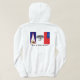 En una sudadera con capucha blanca 3X… en la parte de atrás de la sudadera con capucha tenemos 2 banderas el representar de las islas del americano y de Samoa Occidental, sentándose verticalmente. También en el centro, la palabra SAMOA está sobre los hombros de un hombre samoano fuerte. Y por debajo las 3 imágenes están las palabras, "mejor de ambos el mundo."