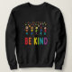 El diseño de Be Kind consiste en un grupo mixto de muchas personas sobre el mensaje "Be Kind" en colores arcoiris. Una imagen étnicamente diversa para sugerir y apoyar la bondad entre todas las personas.