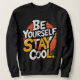 Exprésate con este audaz y motivacional diseño de tipografía con la frase "Sé tú mismo, quédate en Guay". Diseñado con una textura gruesa y angustiada y colores retro vibrantes, esta obra de arte es perfecta para los amantes de las citas inspiradoras y de los mensajes de autoconfianza. Ideal para camisetas, caramelos, pegatinas y más, este diseño propaga positividad y recuerda a todos abrazar su individualidad con estilo. Ideal para los amantes de la estética vintage y de la moda de moda de moda.