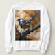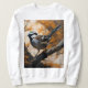Esta pintura al óleo representa un ladrón vibrante encaramado cómodamente en una rama floreciente de un árbol majestuoso. El árbol está vivo con abundantes marrones, la luz solar que se filtra a través de las hojas, creando un ambiente cálido y acogedor.