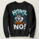 An ultra-grumpy cartoon Siberian Husky with piercing icy-blue eyes, a dramatic unimpressed snarl, and a tail curled in total contempt delivers maximum sarcasm with: “HOWL ABOUT NO!”