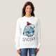 This classic sweatshirt features the beloved Snoopy character prominently displayed in the center. The graphic shows Snoopy dressed warmly for cold weather in a puffy winter coat patterned with a striking blue and white geometric/mosaic design, and topped with a red and white knit cap. Set against a white background, this sweatshirt is a fun and comfortable apparel item, perfect for everyday wear, or as a stylish seasonal layer during the winter months.
