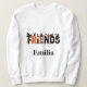 Sombrío sudadero de nombre personalizado de Halloween para amigos. El diseño presenta el texto "Amigos" en una tipografía de estilo negro y naranja con elementos naranjas, amarillos y negros de Halloween como gorra de brujas, calabaza y calavera. Hace el mejor regalo personalizado para tu mejor amigo. Perfecto para que se sientan especiales, aumentar su confianza y conseguir un regalo único y agradable. Incluso tenemos sudaderas, cadenas y camisetas con el mismo diseño en nuestra colección. Por favor, compruébelo. ¡Feliz Halloween!