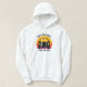 Cool custom road trip hoodie for spring break or summer vacation with your family or friends. Personalize with your last name or group above the retro sunset and car silhouette. Cute hooded sweatshirt for a trip to a cottage or across the country. Drive off into the sunset with this shirt.