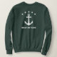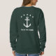 Sudadera elegante para mujeres con un ancla de un barco personalizado clásico, 5 estrellas y tu nombre personalizado, nombre del barco u otro texto deseado en blanco sobre verde forestal. Impreso delante y atrás. Elija entre varios colores y realice ajustes para que coincidan con su equipo de navegación. Hace un gran regalo para cualquier ocasión. Ideal para cualquier época del año.