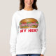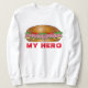 Cuenta con un ilustracion original de marca de un delicioso héroe de jamón y queso (también llamado sub, grinder o hoagie) con MY HERO en un divertido tipo de letra roja.