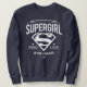 Echa un vistazo al logo gráfico de Supergirl de estilo vintage que dice: "Supergirl - más fuerte y más rápido - mejor que nunca".