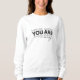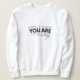 A soft, clean cotton sweatshirt that conveys a subtle message of encouragement. The overlaid typography on the front features a striking "YOU ARE," with a delicate, handwritten "enough" peeking out from underneath—a discreet, inspiring message perfect for everyday wear. The lightweight, ring-spun cotton keeps the fabric soft and breathable, while the tubular construction and reinforced shoulder seams maintain its impeccable shape. Wear it on its own with jeans for a relaxed and confident look, and enjoy a subtle reminder throughout the day.