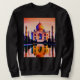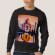 Sudadera en un ilustracion del Taj Mahal, reflejada en el agua, y respaldada por un cielo atardecer naranja de coral profundo