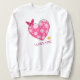 Un corazón rosa juguetón con espirales blancas, acento de mariposa y tipografía I LOVE YOU. Motivo brillante y caprichoso ideal para romance, regalos y ropa alegre para vibras de San Valentín.