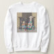 Obra del libro de mis hijos "Field Trip to the Alpaca Farm". Ilustracion gracioso de una alpaca tejiendo una bufanda colorida en la tienda de hilados.