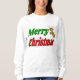 Camiseta con Feliz Navidad en texto verde y rojo 3D y reno. Camisas sudaderas disponibles para hombres y mujeres.