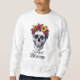 Acepte la elegancia tranquila de nuestro diseño "Tranquil Bloom". Esta cautivadora pieza exhibe un cráneo, reimaginado en un estado de serenidad contemplativa, coronado con una impresionante variedad de flores rosadas, amarillas y naranjas entre verdes hojas. Se trata de una potente declaración artística sobre la belleza y la vida, incluso en los lugares más inesperados, que ofrece una mezcla única de reflexión y encanto radiante. Usa una pieza que hable con el alma.