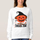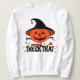 Celebra Halloween de manera espeluznante con esta obra de arte de la Trata de Calabaza con una calabaza super linda con un hacha de daga y un fantasma. La obra de arte lleva un gorra, añadiendo un aspecto de misterio a la figura fantasmal.