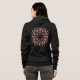 Gótico de horror encapuchado en rosa y verde representando un ilustracion caleidoscópico al estilo de un circo de horror con ojos y cuernos.