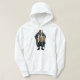 An anti Trump hoodie featuring a homeless Donald Trump in ragged clothes holding a cardboard sign.
