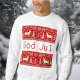 Get into the festive spirit with this Ugly Xmas Sweater–style white sweatshirt, featuring a printed look pattern that recalls the look of a traditional knitted holiday sweater. The design includes two decorative borders with the text “God Jul” — meaning Merry Christmas in Swedish — for a fun Nordic twist. Created by Alma Wad, this cozy sweatshirt is perfect for an ugly sweater party when you don’t have a knitted one on hand. Customize the text to make it uniquely yours and spread Scandinavian holiday cheer with style!