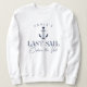 Manténganse acogedoras en su despedida de soltera náutica o de botes con estas sudaderas personalizadas lindas. El diseño presenta una ilustración de un barco azul marino coronada por un pequeño corazón, con dos líneas de texto personalizado debajo; mostrado con "Último Velo Antes de la Vela". Agregue el nombre de la novia curvado en la parte superior. Los colores se pueden cambiar para que coincidan con sus colores preferidos utilizando la herramienta de diseño de Zazzle.