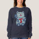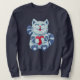 Sudadera de amante del gato con un lindo ilustracion digital que representa a un feliz gato azul enamorado. El pequeño felino sonríe y sostiene un gran corazón rojo.