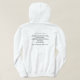 Sudadera encapuchada con una pluma de Eagle en el escudo en el frente. En la parte posterior, un refrán de, principal Eagle blanco: "Va adelante con valor cuando usted está en duda, todavía esté, y la espera; cuando la duda existe no más para usted, después vaya adelante con valor. Siempre y cuando las nieblas le envuelven, todavía esté; todavía esté hasta que la luz del sol vierta a través y disipe las nieblas -- como lo va a hacer seguramente. Entonces acto con valor."