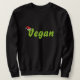 Un diseño rojo y verde con la palabra: Vegan, con un sombrero Santa Navidad en la primera carta.
