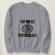 El tanque americano rugoso que conduce sobre rocas con las llamas que se arden en el fondo, con una bandera americana agitando desde arriba del tanque, creado todo en un logotipo oval circular del estilo del emblema. Título, "veterano de WWII," escrito arriba en oro metálico.