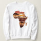 Una silueta estilizada del continente africano llena de escenas de vida silvestre y naturaleza. La imagen presenta animales africanos emblemáticos como leones, jirafas, rinocerontes, elefantes y antílopes, colocados sobre un telón de fondo de árboles de acacia y un sol abrasador. Los tonos cálidos y degradados de naranja, rojo y marrón evocan los colores de una sabana africana al atardecer. La composición combina maravillosamente la forma de África con su rica biodiversidad y paisajes naturales.