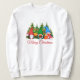 Feliz Navidad colorida acuarela de colores divertidos con Navidad Presenta sudadera navideña con pinos y luces de cuerda.