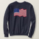 A traditional waving American Flag decorates this classic sweatshirt.