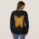 The wings are composed of golden, braided dough filled with a sweet swirl (likely cinnamon or a fruity filling, resembling a Danish or cinnamon roll). The central body is a perfectly braided loaf, and the antennae and eyes (perhaps dark berries or olives) complete the whimsical insect design. The craftsmanship is exceptional, highlighting the baker's skill.