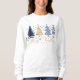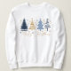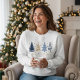Whimsical Merry Christmas Festive Trees Blue Gold Women's Sweatshirt features a whimsical Christmas trees in blue and gold with the text "Merry Christmas" in modern gold calligraphy script typography. Perfect for Christmas gifts, Christmas party apparel and holiday celebrations, winter and holiday birthdays and more. Created by Evco Studio www.zazzle.com/store/evcostudio