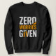 Stay comfortable and confident with our “Zero Worries Given” sweatshirt — the perfect blend of bold style and relaxed attitude. Made from soft, durable fabric, this sweatshirt keeps you cozy while making a clear statement. Ideal for casual outings, chill days, or anyone who loves a bit of humor in their wardrobe. Pair it with jeans, joggers, or layer it for all-season comfort.