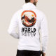 Diseño vectorial de alta calidad para estampado en camisetas, que presenta un paisaje vibrante contenido dentro de una forma de círculo. El círculo se sitúa sobre la frase "WORLD TROTTER", ubicada de manera prominente en la parte inferior del diseño. La tipografía moderna y audaz de "WORLD TROTTER" asegura que sea el punto focal. El paisaje dentro del círculo incluye montañas estilizadas en tonos vibrantes de naranja, marrón y crema, con gradientes sutiles para añadir profundidad. Un sol brillante o un resplandor solar en tonos cálidos de naranja y amarillo ilumina el fondo. Árboles abstractos o follaje en negro y marrón oscuro añaden contraste y detalle. El cielo suave, en un gradiente de crema o naranja claro, se integra perfectamente con la forma del círculo. La paleta de colores vibrante, centrada en naranja, crema, negro y marrón, crea un diseño dinámico y aventurero, ideal para el tema "WORLD TROTTER".