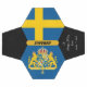 Baloncesto de fútbol Patriótico Suecia con Bandera Sueca, emblema - diseño moderno con mensajes fácilmente personalizados y optativo una o dos fotografías simplemente agregadas usando botón personalizado (activar fotos en edición, si quieres usar).