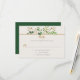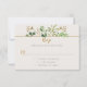 Hojas verdes, eucalipto y brotes dorados sobre un fondo marfil coronan los detalles de tu RSVP. La parte posterior de la tarjeta es verde oscuro. Las casillas de texto son fáciles de personalizar con tu propia información. Una mezcla de fuentes modernas y caligráficas hacen de esta una perfecta tarjeta de respuesta de boda.