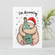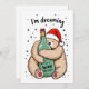 Un divertido y alegre diseño de vacaciones Navidades muestra a un adorable oso de peluche con sombrero de Santa, que aferra con sueño una gran botella de vino. El texto escrito a mano dice: "Sueño con una Navidad vinícola". Este diseño se presenta en una variedad de productos que hacen regalos perfectos para los amantes del vino.