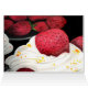 Pintura original de fresas sobre platos. Fresas cubiertas con crema de látigo y nueces. Creado mediante pintura acrílica en lienzo.