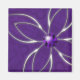Contra un fondo kaleidoscopio abstracto de fractales de apofisis suave se encuentra una flor de cuatro petalos de fibra de plata, con una amatista brillante en el centro y pequeñas piedras redondas en las esquinas. Un ilustracion que usa el púrpura como símbolo de la realeza y la riqueza.