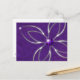 Contra un fondo kaleidoscopio abstracto de fractales de apofisis suave se encuentra una flor de cuatro petalos de fibra de plata, con una amatista brillante en el centro y pequeñas piedras redondas en las esquinas. Un ilustracion que usa el púrpura como símbolo de la realeza y la riqueza.