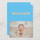Tarjeta de anuncio de natalidad colorida de dos caras con colores pastel azul y naranja en un diseño gráfico contemporáneo que presenta el nombre y la foto de su chica o hijo recién nacido. El nombre completo de los bebés, el registro de nacimiento y el nombre de los padres en el reverso pueden ser personalizados para presentar a su recién nacido a sus amigos y familia.