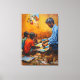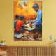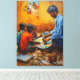 Pintura de óleo que representa a un hombre y niños pintando juntos en una gran paleta. Los tonos cálidos y los trazos texturados capturan un momento de creatividad y aprendizaje compartidos.