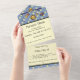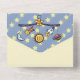 Esta invitación "todo en uno" con tarjeta RSVP extraíble es perfecta para inspirar sueños y cuenta con un fondo de rayas azul pálido en dos tonos y suaves estrellas amarillas. En la parte superior de este patrón hay paneles de amarillo pálido con un borde negro para proporcionar una base para el texto de ejemplo en el interior que se puede personalizar para el evento y espacio en blanco en el exterior que se puede usar para dirigir las tarjetas al destinatario y la sección que se puede devolver con la dirección de retorno apropiada. Finalmente, un móvil lúdico con temática espacial adornado con una luna creciente, una estrella fugaz, un sol brillante, un barco con cohetes y un planeta colgado de los brazos con detalles de zigzag azul y morado y una estrella justo en el medio, se sienta en los alerones con una muestra inicial dentro del sol para agregar un toque final de personalizado. No olvide visitar la colección completa de Dreams of Space Mobile para más regalos y productos de primera para una ducha de bebé o la pequeña de tu vida.